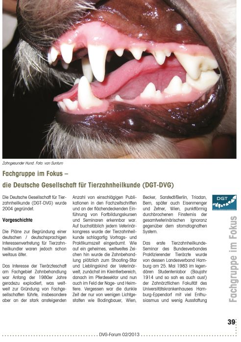 In die Liste der DGT-Tierzahnärzte werden ausschließlich Tierärzte aufgenommen, die Mitglied der DGT sind, sich intensiv mit dem Thema Tierzahnheilkunde beschäftigen und ihre Qualifikation in diesem Bereich durch spezielle Fachqualifikationen und/oder entsprechende Fort- und Weiterbildung bewiesen haben.
